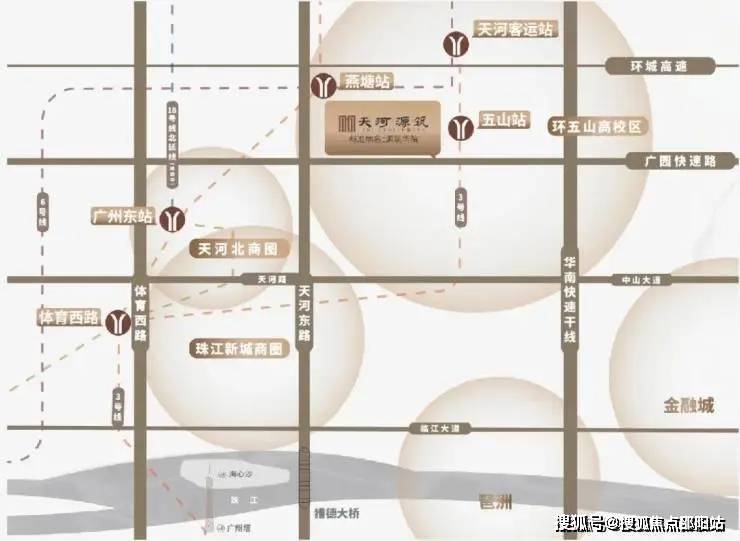 2横:广州环城高速、广园快速路- 3地铁:地铁3号线、6号线及1号线