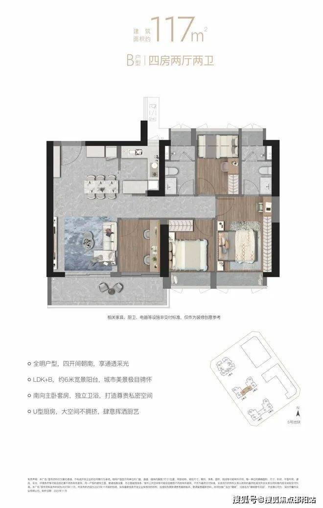 ✨✨塘城壹号花园售楼处电话:400 9616 219【☎售楼处已认证】❇❇❇❇✨✨塘城壹号花园开发商电话:400 9616 219【☎开发商已认证】❇❇❇❇【B户型117㎡四房两厅两卫】“南向全明四房LDK+B”设计,宽景阳台,拥揽四季