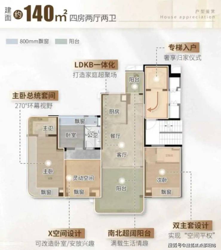 3、建面约139m²城际瞰景4房
