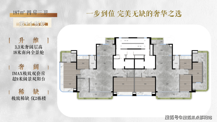 1、建面约187m²央楼王4房
