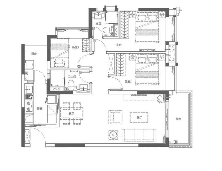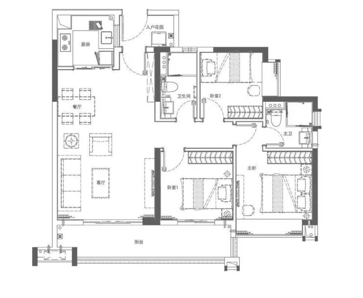 建面约96㎡滨水舒适三房,餐客厅一体化,连通观景阳台,臻藏生活美景,客厅与休息区以科学合理的布局分隔,动静皆从容,卧室均规划大面宽飘窗,放大房间尺度感,营造舒适生活体验。