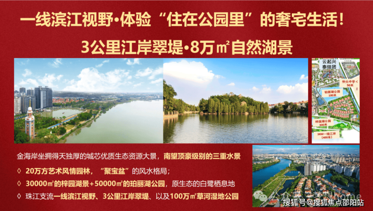 金海岸花园拥有延绵3公里江岸翠堤,一线头排无敌江景视野,极目100万平米湿地公园;拥有繁华都市之心罕见的50000平米珀丽湖公园,以“住在公园里的家”为主题,打造出“中心大湖+江岸3重水景”的景观格局,漫步在社区组团园林里,步步皆景,即使坐在家中,推窗既享受亲园亲水的鲜氧生活!