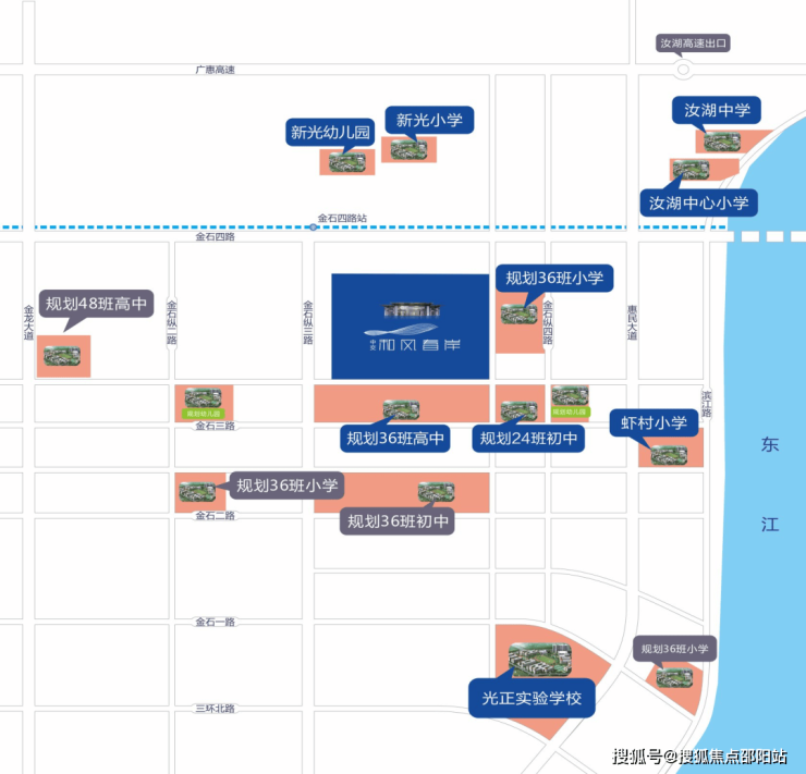 规划36 班小学、24 班初中、36 班高中3 所学府,