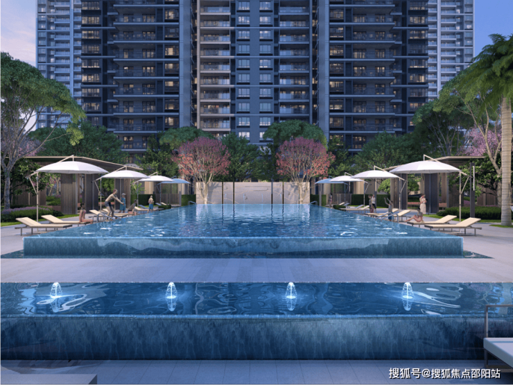 中心水景泳池2个:350㎡成人泳池,80㎡儿童泳