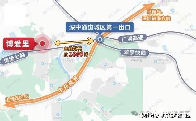 项目距离深中通道城区出口仅1.6公里,20分钟直达深圳前海,未来承接深中双城通勤需求。