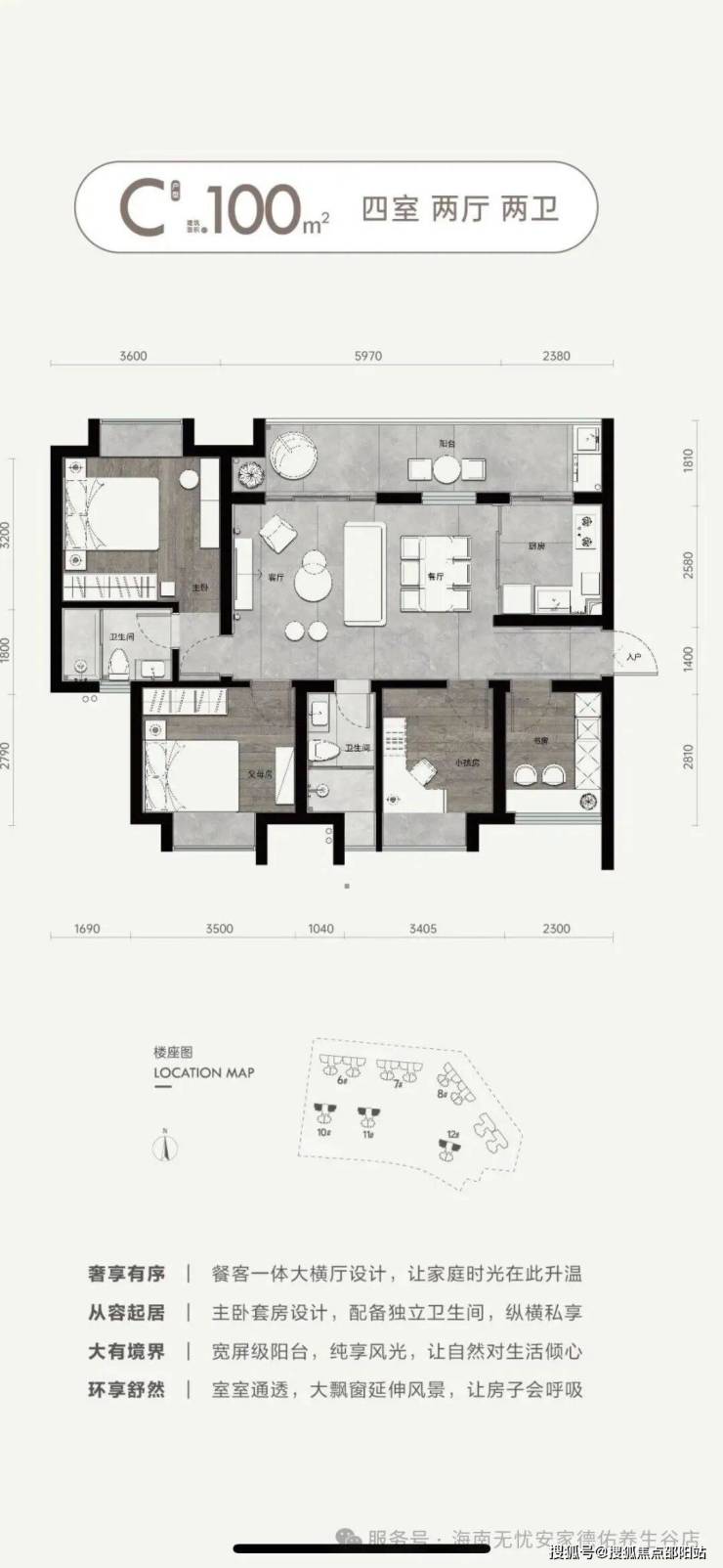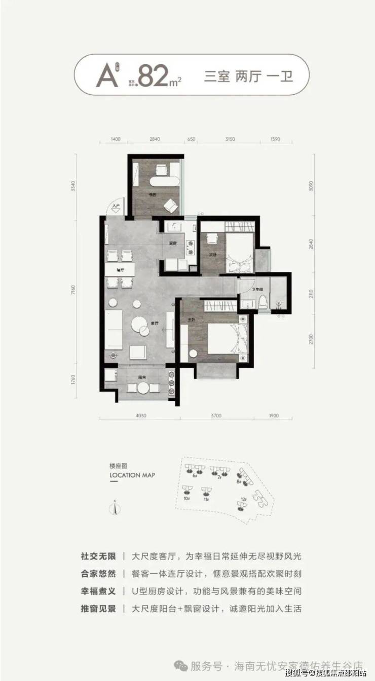 9.【三亚绝版 极致稀缺】82㎡三房,99㎡四房,超高得房率,270度观景面,观山阅景,尽显从容。二梯四户,纯板式通透式设计,户型方正,全屋品牌精装,尽享三亚生活。
