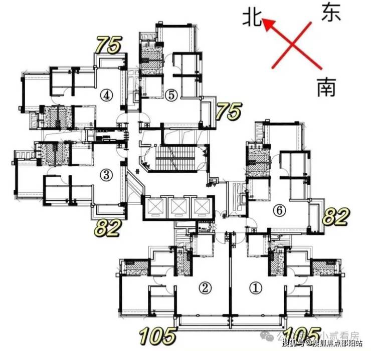 75方有东北东南向,82方是西南东南向,105方是西南向