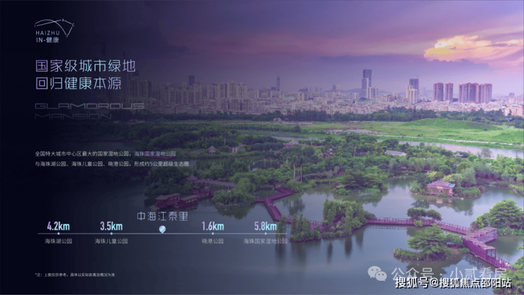 拥有国家级城市绿地自然资源:被全国特大城市中心区最大的国家湿地公园——海珠国家湿地公园,与海珠湖公园、海珠儿童公园、晓港公园,拥有5公里的超级生态圈。