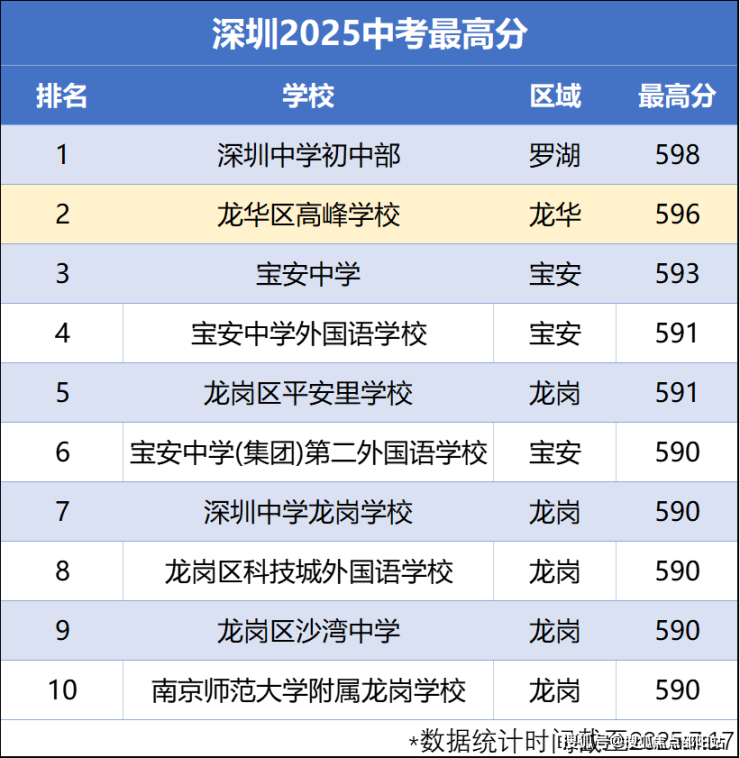 据悉,今年中考高峰学校成绩优异,最高分达到596分,仅排在深中后、位居全市第二!