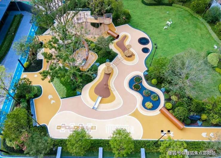 侧重娱乐、活动与交友功能,设置了滑滑梯、平衡桥、梅花桩、跳远、跳格子等儿童设施,让小孩可以快乐成长、轻松交友。