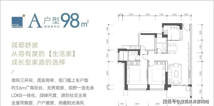 98㎡的3房2厅2卫,设计的是经典竖厅格局,LDKB一体化设计,客厅3.6米开间,三开间朝南,动静分区,3个卧室分别做到了主卧13.69㎡/次卧11.62㎡/次卧5.76㎡(包含墙体飘窗),都不用搭配飘窗做床,L型厨房,卫生间干湿分离,得房率约:89%(包含赠送),西南、东南或正南朝向。
