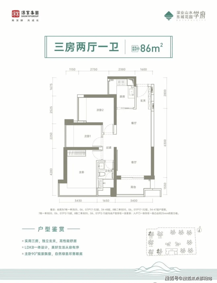 86m²,3房2厅1卫:折后总价约:215-230万