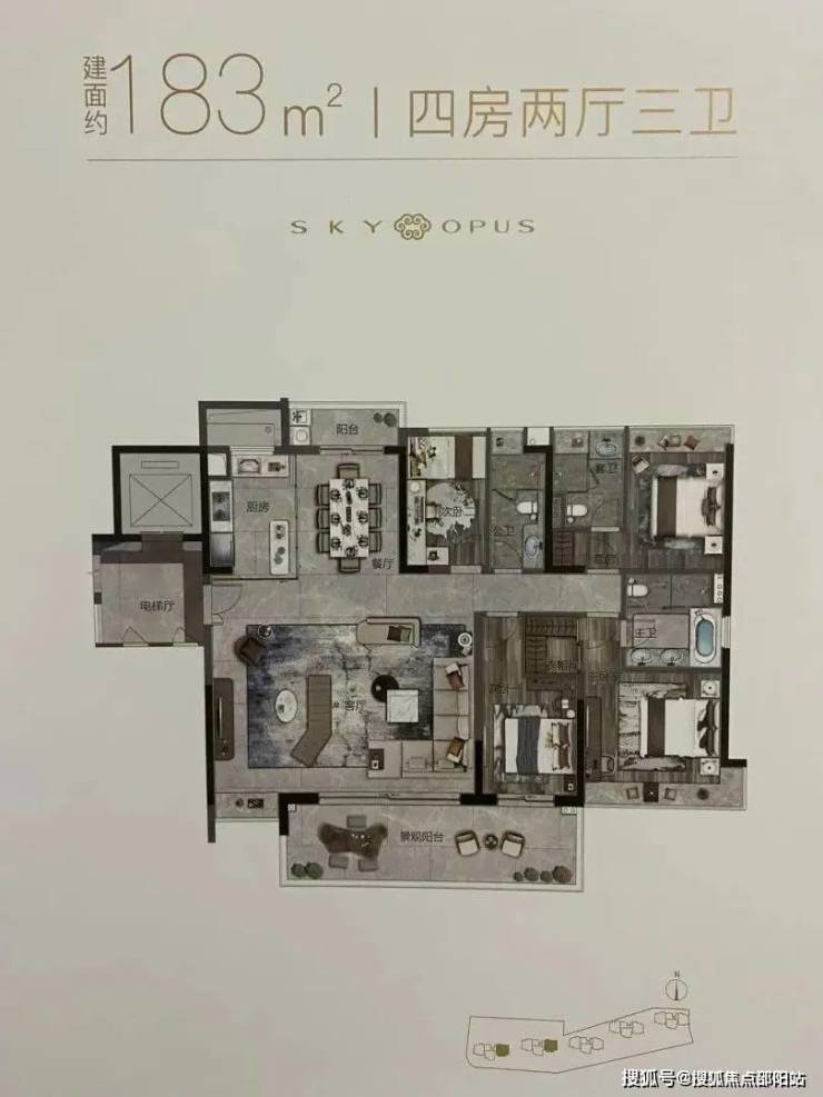 约183㎡户型,是项目的王牌,也是最稀缺的面积段。