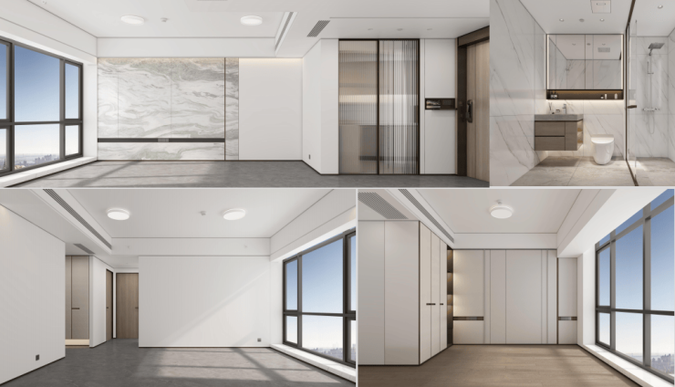 譬如建面约51-56㎡的一房一厅一卫,功能分区明确,互不干扰,客餐厨一体化设计,带来更阔绰的居住空间。