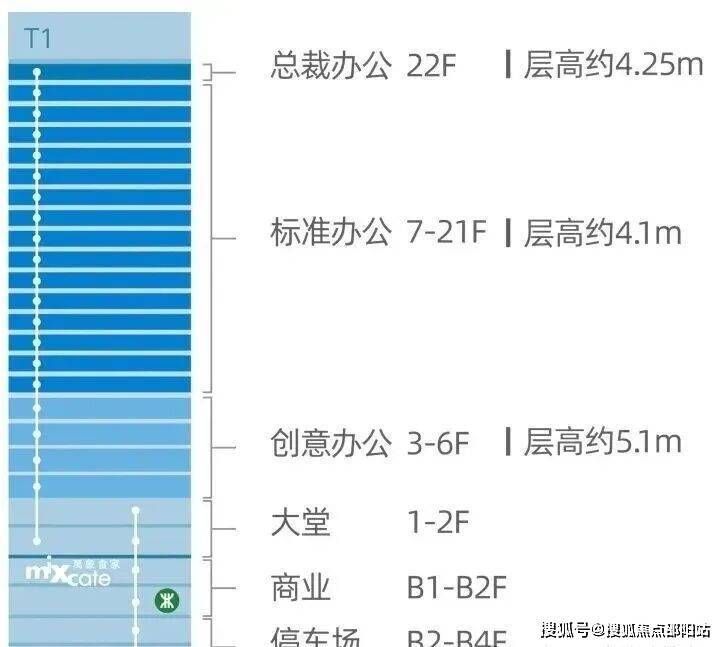 分层层高:3-6F:约5.1米;7-21F:约4.1米;22F:约4.25米
