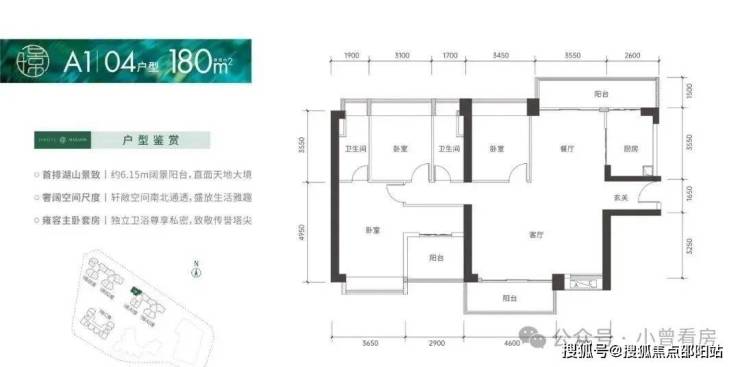 面积段:50㎡的1房1厅,70-85㎡的2房1厅,95-105㎡的3房2卫,120-150-180㎡的4房2卫户型