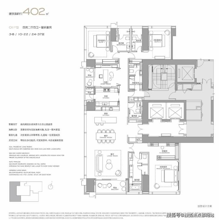 层高3米6 两梯一户(独享入户)