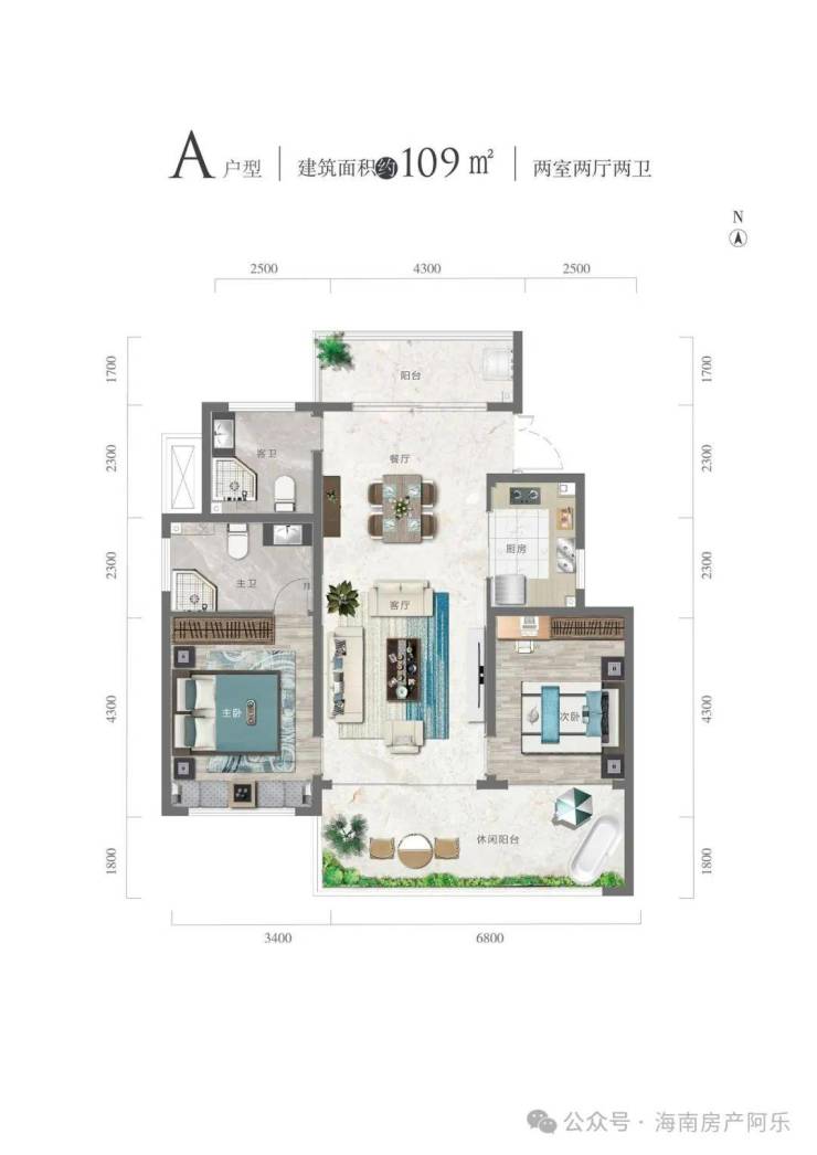 A 户型109㎡两室两厅两卫