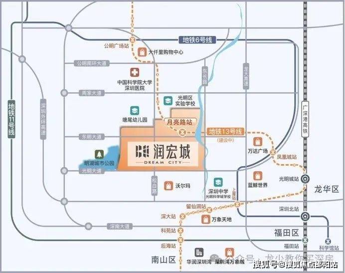 未来1站凤凰城,在此处换乘6号线,可便捷通达福田中心;3站即到轨道枢纽光明城站,搭乘高铁,可快速直达深圳北、福田。13号线线路开通后,润宏城乃至整个片区的交通将迎来前所未有的便捷与高效。