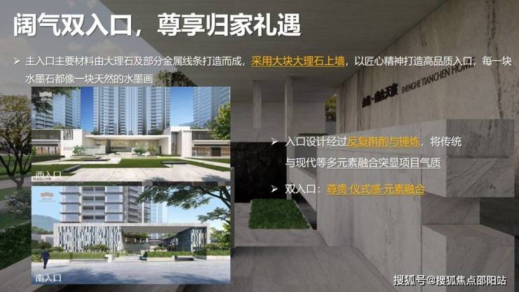 双入口设计,将园林与入口景观设计完美融合,现代风格设计与建筑线条与景观相得益彰。