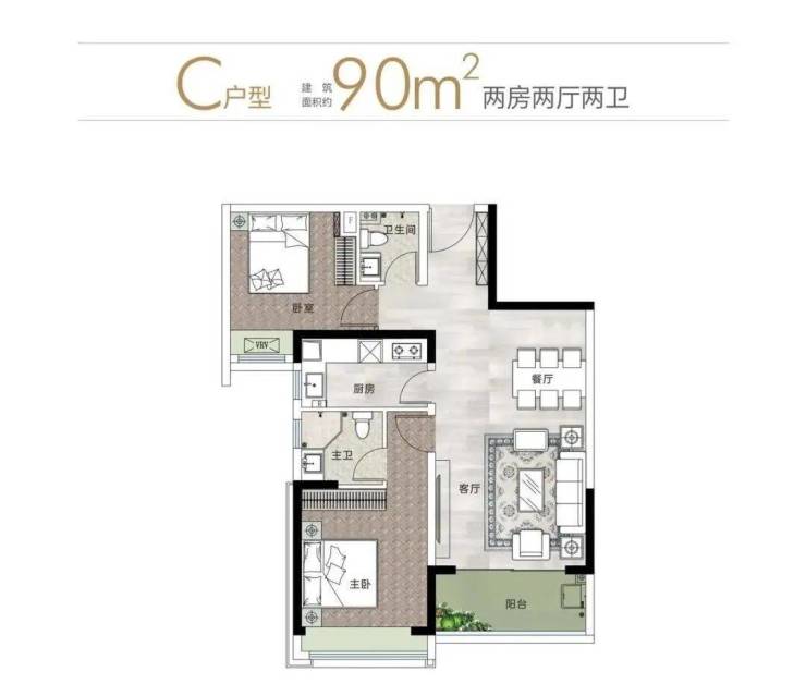 90平米做两房,偏奢侈型,不够刚需;