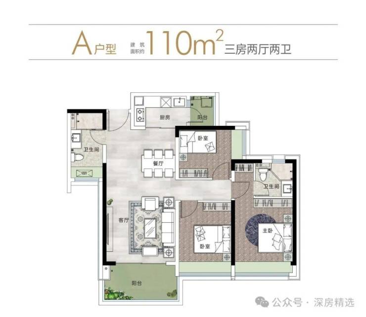 111㎡ 3房2卫