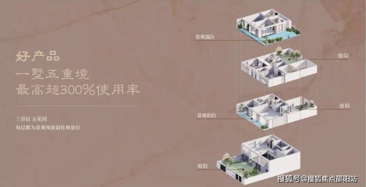 所谓“三首层五花园”,整个别墅是由地下可拓展空间及地上3层组成,临湖一排别墅的地下室,是可以像首层一般,直接露出地面,可以直接从花园回家。