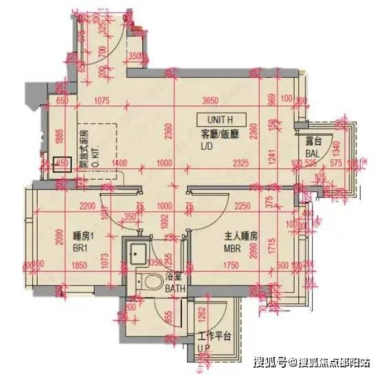 发展商开放示范单位属无改动交楼标准,以18楼H室为蓝本,实用面积388平方呎,连22平方呎露台,为2房间隔。
