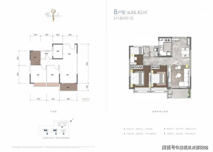 B戶型:約86.82㎡ 2+1房2廳1衛