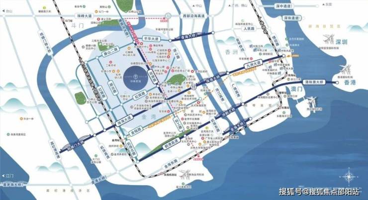咫尺珠海大道與雙湖路雙主軸,暢連東西兩城,南連珠海大道速通拱北、香洲等,北連斗門中心城,多維交通貫穿全城