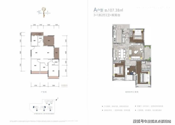 A戶型:約107.38㎡ 3+1房2廳2衛