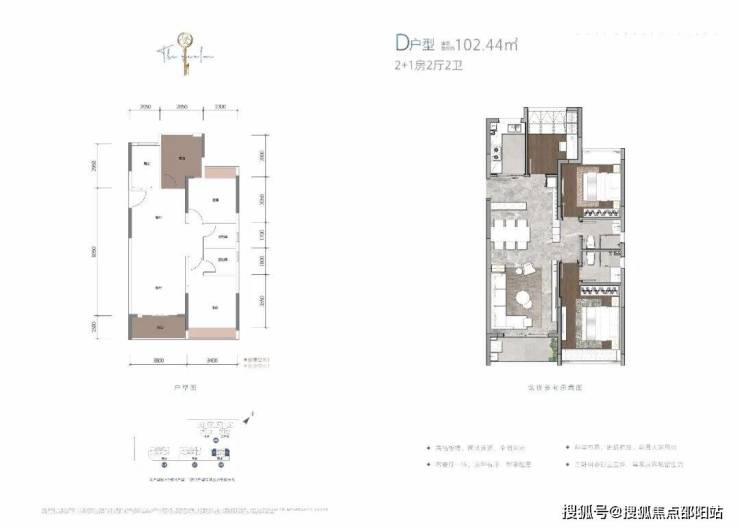 D戶型:約102.44㎡ 2+1房2廳2衛