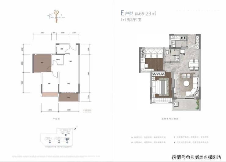 3棟17層,兩梯四戶,戶型為69㎡兩房一衛及102㎡三房兩衛;