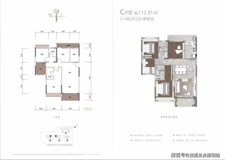 C戶型:約112.01㎡ 3+1房2廳2衛