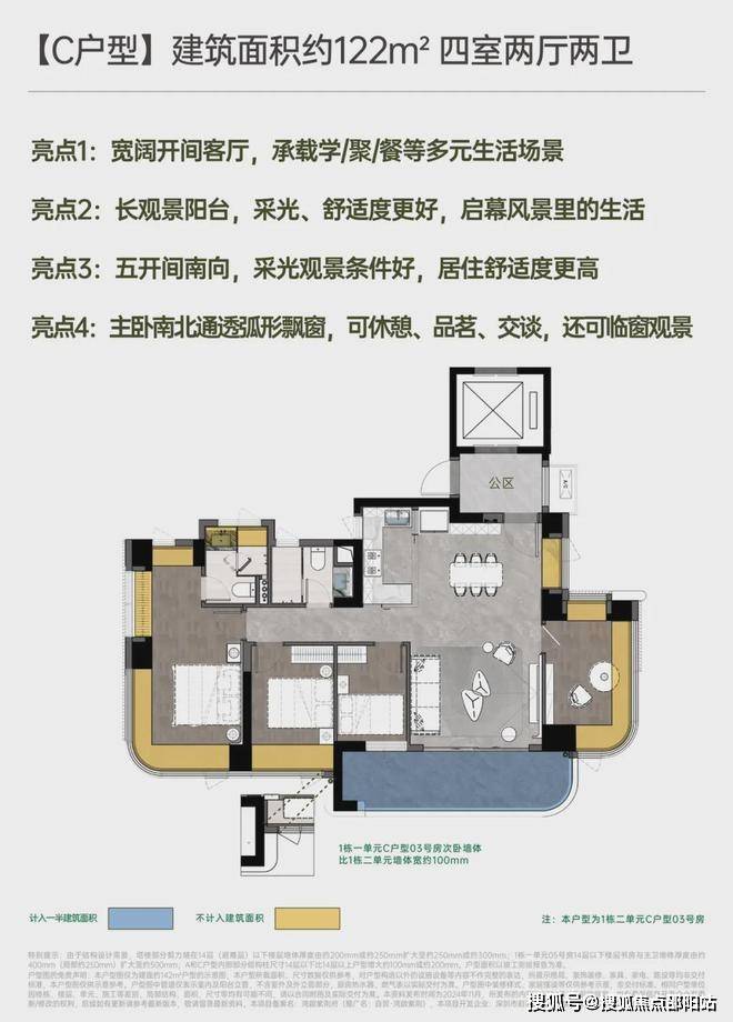 • 建面约142㎡南北方厅 阔景四房