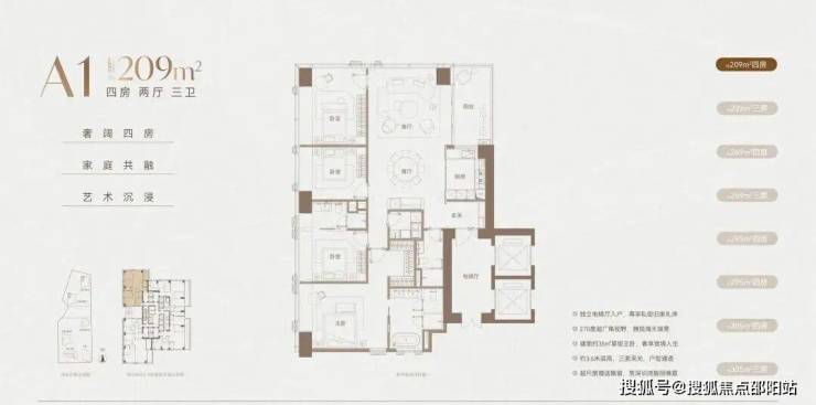 3️⃣户型面积209平以上都有保姆房+保姆梯。