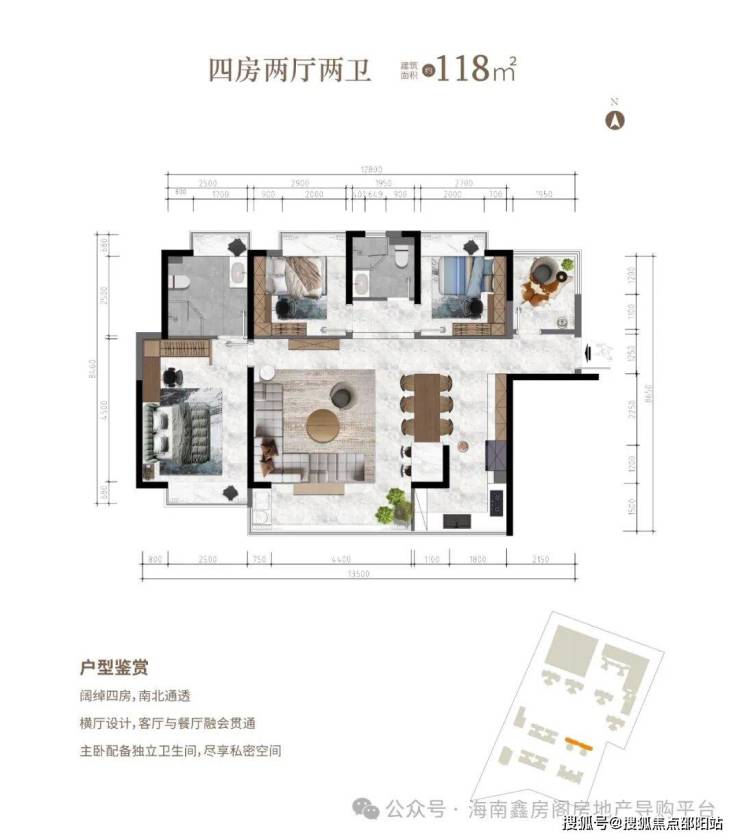 四房两厅两卫 建面约118.8㎡