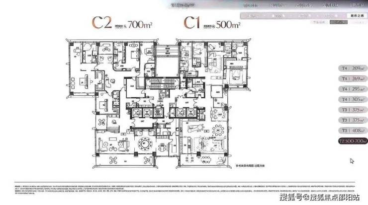 超高区58F起(200米以上)是约500-700㎡顶级大平层