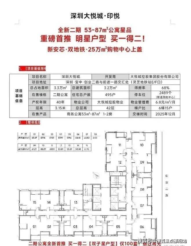 项目分为三期开发:一期由5栋塔楼,分别有住宅、公寓、写字楼组成。 二期由自持的约15万㎡大型体验式集中商业—深圳大悦城及1栋约200米地标写字楼、1栋高端公寓; 三期由1栋住宅+公寓,2栋办公组成。