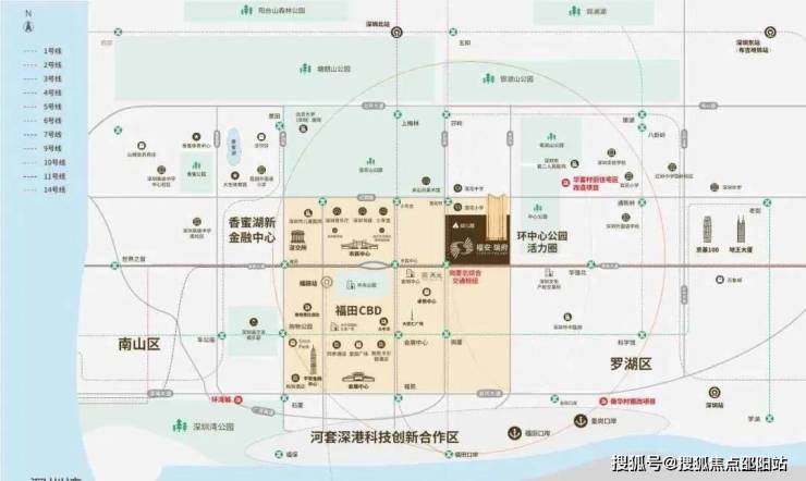 项目属于岗厦北地铁口项目,作为深圳交通枢纽之一,岗厦北汇集 有地铁2号线(8号线)、10号线、11号线、14号线;另外,项目距离莲花村地铁口步行距离约720米,可搭乘地铁3/10号线。从项目出发可便捷通达深圳东西南北各方向,交通便捷度非常高。