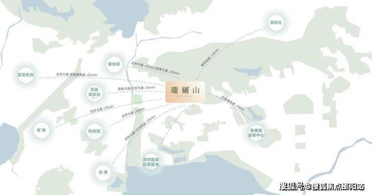 1、中心区域:深圳山海城中轴,左手香蜜湖、右手华侨城,六大总部基地环伺