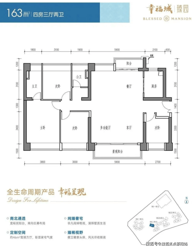五单元:56F 3梯5户 96-118㎡3-4房✅幸福城臻园五端直连官方专线:400-825-2065