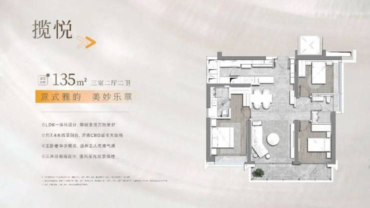 ◇【广州第一座万象城——广州白鹅潭万象城】重续白鹅潭千年商脉,引领高品质风尚标杆◇【引领峯层时代的国际化生活平台——万悦荟】「万悦荟」整合多元业务领域,联手行业领先国际品牌,为业主带来系统化、定制化的全新滨江万象生活方式,包括:悦享无界、悦鉴万象、悦江·CLUB、悦江家宴、悦览世界、悦知品位、悦心礼遇、悦伴友居、SMART·悦服务9大权益。◇【海上丝绸源点,约800米宽幕江面,270°三江汇聚视野】见证广州的风华印章,鉴赏世界的万象繁华◇〔白鹅潭 TOD 荣耀加身 ,纵享五维交通)4地铁: 约 399 米白鹅潭TOD(芳村站)4 地铁交汇 ,l 号线已开通 ,ll 号线/22 号线建设中, 28 号线规划中;2 主干道/2 高速/3 隧道: 花地大道及芳村大道交汇, l 公里内有珠江隧道/洲头哩隧道/如意坊隧道(建设中) ,接驳内环及环城;2 水上巴士: 约 599 米芳村码头 ,S2 线到达中大/广州塔 ,S6 线到海珠区永兴街/老荔湾黄沙 ,畅游滨水生活◇〔白鹅潭芯 ,五维全能城熟生活配套)6 所省级名校:配建一所约 6 班幼儿园及约 24 班中学, 周边包含康有为纪念小学在内的 6 所省级学校6 大高端商业:片区拥有万象城、领展购物广场、太古商业(在建中)、花地湾 TOD 购物中心(规划中)、广船商业(在建中)、 星河 COCOpark 六大高端商业环绕 ,比肩香柳丽舍大街。6 所三甲医院: 直线 2KM 范围包含:省中医芳村医院、广医大附属中医医院/第三医院/脑科医院、广医科大附属口腔医院、荔湾区 人民医院(在建) ,24H 为健康护航。在售户型赏析:◇135㎡三室两厅两卫 总价:950-1150万/套