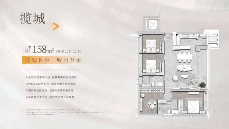 一线城市核心资产 滨江万象综合体之上全球一线高阶顶序作品◇项目地址:广州·白鹅潭CBD(导航:华润置地·白鹅潭悦府)◇所属板块:广州·白鹅潭CBD◇开发商品牌:华润置地◇项目规模:建面约69万㎡滨江万象综合体(内含约 2.2 万㎡的滨江公园、约 8.3 万㎡的高端商办、约 l.9 万㎡的配建学 校,约 26.9 万㎡万象城及约 l7 万㎡三江万象大平层等。)◇物业费:6.5元/㎡(万象服务)◇总户数:564户◇车位数:1149个◇交房时间:2025年11月30日(精装修交付)◇项目户型: (建面)约135-243㎡三、四房在售详情如下:【西地块】1栋(42F):2T2,243㎡2栋(45F):3T3,158㎡、174㎡3栋(45F):3T3,135㎡(售罄)、178㎡【东地块】6栋(52F):2T2,243㎡8栋(55F):3T3,135㎡、185㎡◇【滨江万象的传奇故事,2023年热销超60亿】2023全年白鹅潭悦府累计成交金额超60亿,荔湾区千万级产品成交量TOP1;并被克而瑞评选为“2023年全国十大高端作品”;2024年更是荣获2024法国设计大奖金奖、2023美国IDA国际设计大奖◇【广州传统中轴之上,广州万亿都市圈之芯】广州传统中轴——未来广佛万亿都市圈核心;华润置地白鹅潭综合体项目——广州5万亿都市圈的焦点