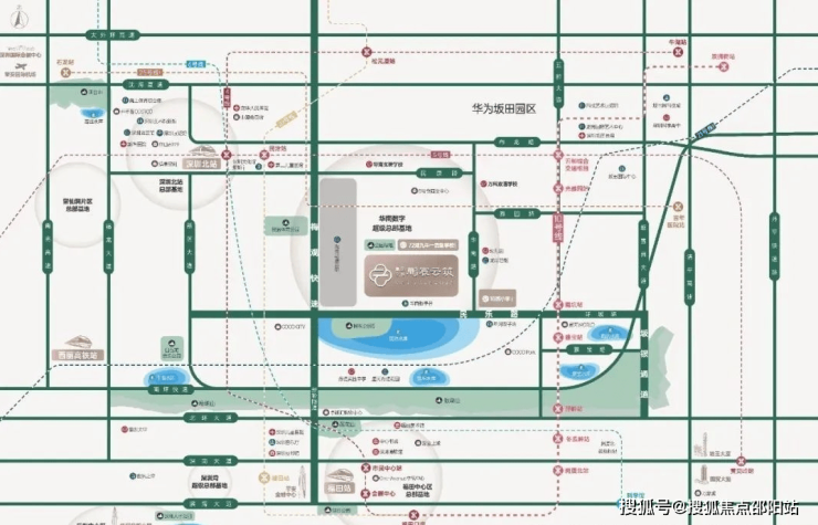 ④深圳发展中轴,华南数字超级总部基地、星河world总部基地、坂雪岗科技城、北站产融结合示范区、梅彩新一代信息科技,连成深圳中轴含金量置顶的价值金线。