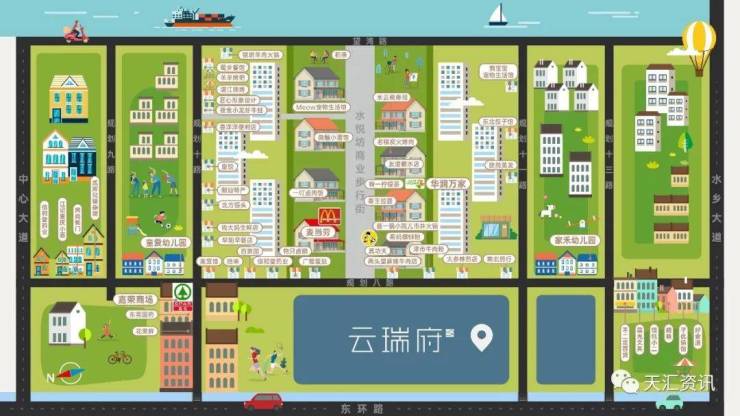 下楼即达商业街,日常所需应有尽有:配建5400㎡商业街和6000㎡高品质便民市场,一路之隔水悦坊商业步行街,已引入麦当劳、华润万家、嘉荣超市、真功夫等及各式各样的品牌商家。