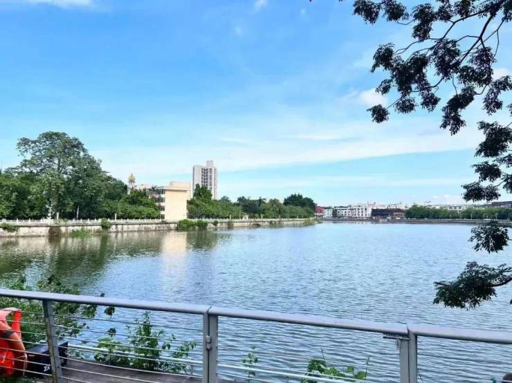 小区旁边的石榴岗河,和海珠湖以及珠江属于同样水源。湖水碧绿,生态环境优美。