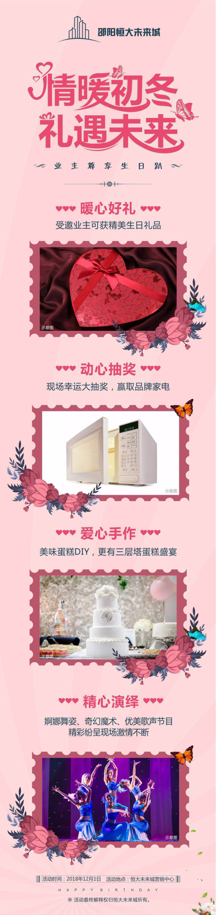 情暖初冬,礼遇未来 【邵阳恒大未来城】 为您倾心准备尊享生日趴 生日礼丨品蛋糕丨大抽奖 活动时间:2018年12月1日 活动地点:恒大未来城营销中心