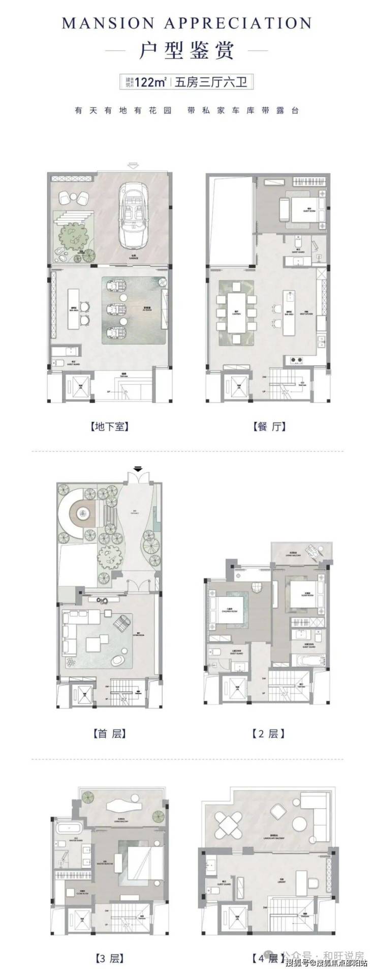 产品面积:别院(建面122㎡,房屋实得415㎡,花园50-200㎡)