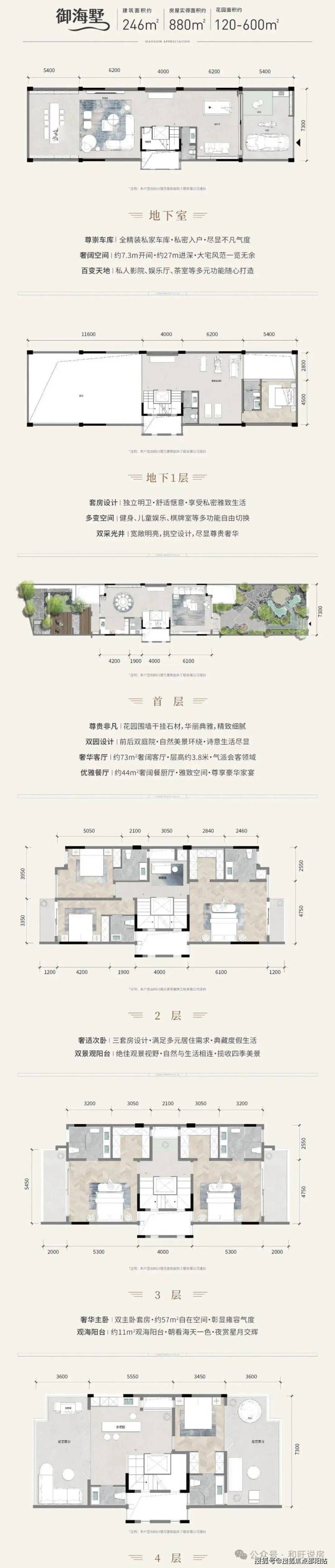 御海墅(建面246㎡,房屋实得880㎡,花园120-600㎡)